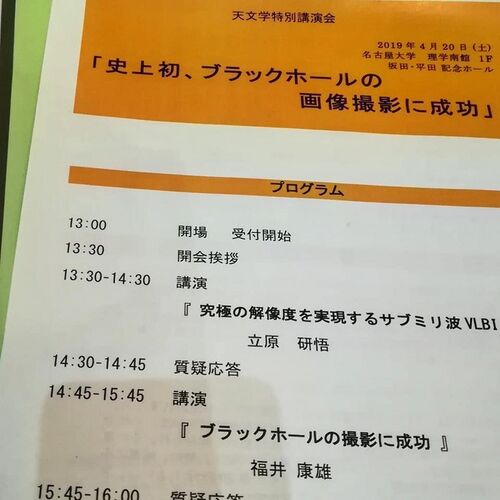 史上初ブラックホール画像撮影にEHT成功 世界中の電波望遠鏡をつなげてひとつの地球規模の超巨大電波望遠鏡として観測を行う イベント・ホライズン・テレスコープ EHT において、ブラックホール撮影に成功 したとのことで、2019年4月20日の名古屋大学での一…